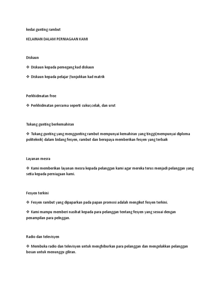 Perniagaan sentiasa memberikan peeerkhidmatan yang. Kertas kerja program keusahawanan bengkel latihan keusahawanan perkhidmatan gunting rambut kolej komuniti batu pahat johor. Kertas kerja kedai gunting rambut Rosedi Ibrahim.